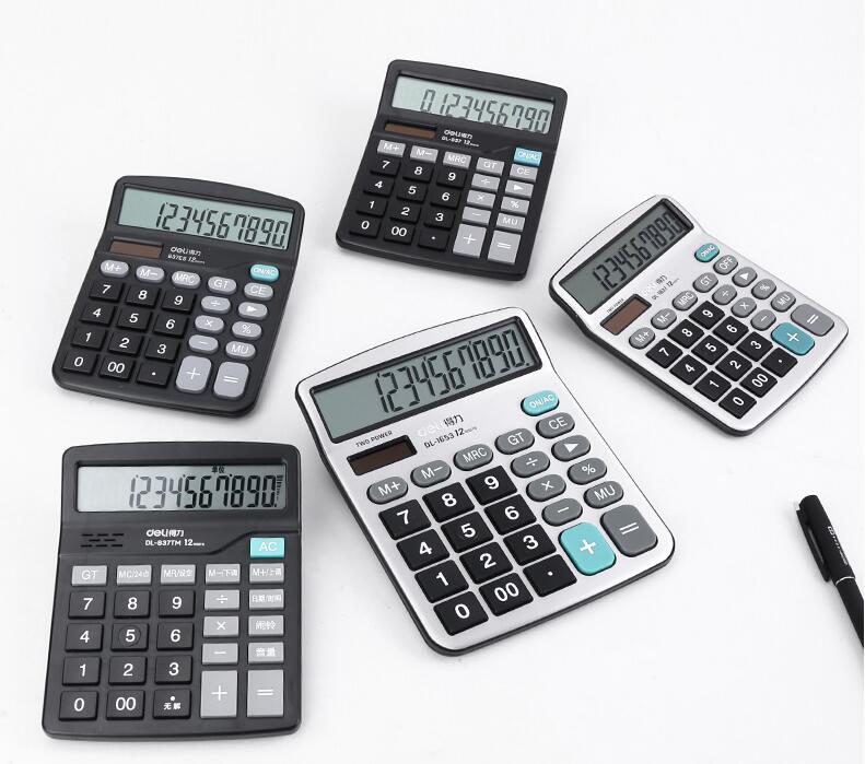 得力837計(jì)算器辦公用會計(jì)專用太陽能學(xué)生用帶語音大學(xué)財(cái)務(wù)小號便攜雙電源計(jì)算機(jī)器按鍵文具辦公用品大號